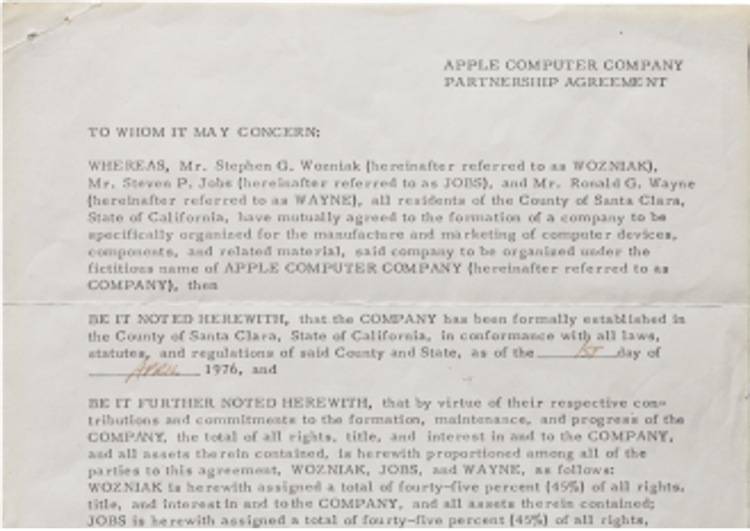Christie’s organizza un’asta per l’atto di nascita di Apple, un pezzo unico